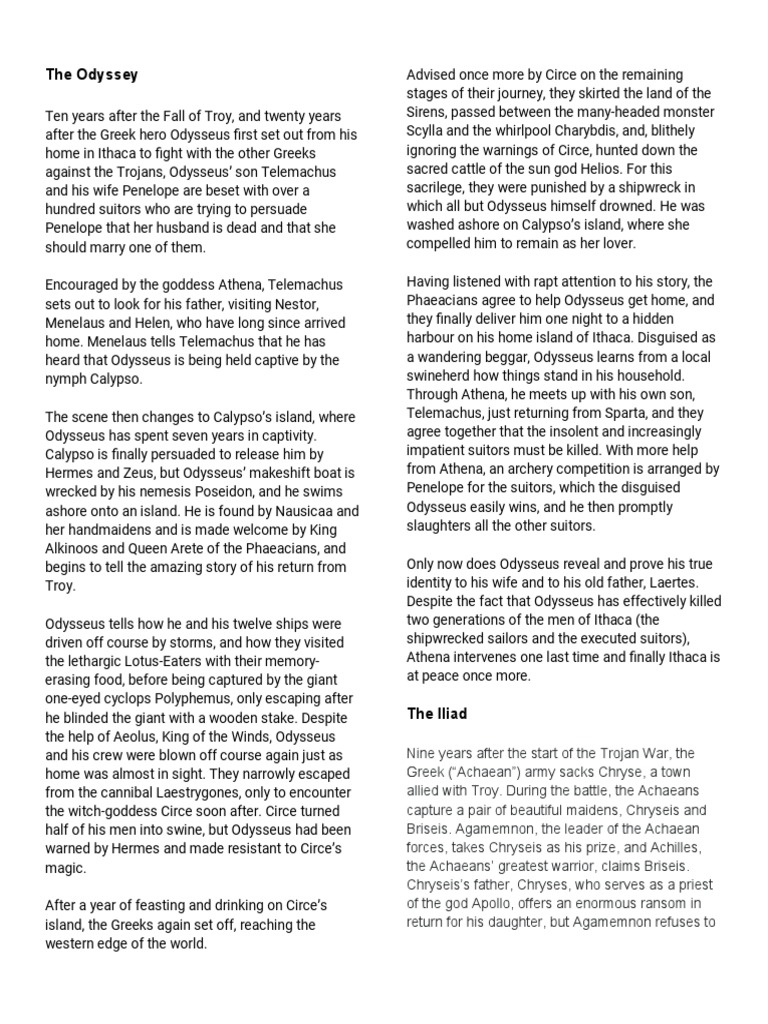 Iliad Odyssey Summary Pdf Odysseus Hector